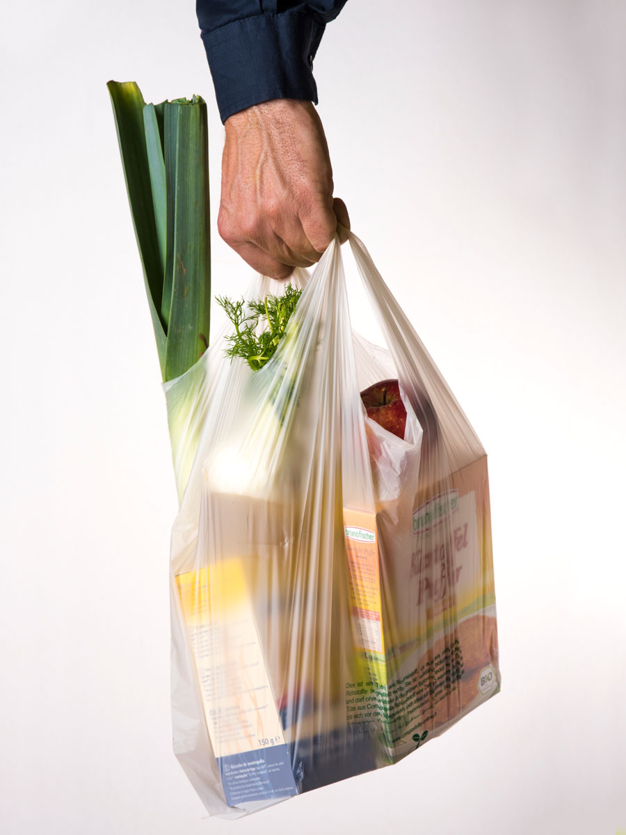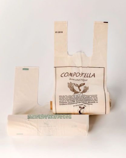 Für den etwas größeren Einkauf eignen sich vor allem die Einkaufstüten auf Basis von Maisstärke. Sie bestehen aus dem gleichen Material wie unsere Obst- und Gemüsebeutel und besitzen eine Tragkraft von bis zu 4 kg. Viele Bioläden, Hofläden, Reformhäuser, Supermärkte und Marktstände kennen bereits die Vorteile der COMPOSTELLA Einkaufstüten und bieten sie in ihren Läden zur Mitnahme und zum Verkauf an.